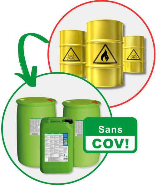 Loin des solvants : nous proposons des solutions système alternatives et modernes dans le domaine de la technologie des surfaces, en accordant une attention particulière à la durabilité, à la protection du travail, de l'environnement et de la santé, sans pour autant influencer l'efficacité. Notre concept global de durabilité repose sur l'examen de l'ensemble du cycle de vie de nos produits et systèmes. Ainsi, ceux-ci sont considérés depuis leur fabrication jusqu'à leur élimination en passant par leur utilisation.
