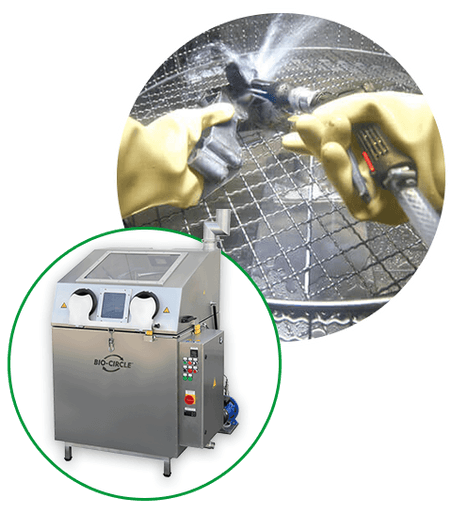 Le BIO-CIRCLE TURBO est le choix idéal lorsqu'un système de nettoyage doit répondre à un large éventail d'exigences. Grâce à sa combinaison innovante de nettoyage manuel à l'aide d'une brosse continue et de nettoyage automatique, comme dans les laveurs de pièces à l'eau chaude, il répond à toutes les exigences imaginables.