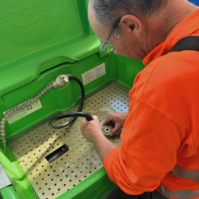 Das Besondere: Mikroorganismen im Reiniger bauen abgetragenes Öl ab. In Kombination mit dem integrierten Kreislauf- und Filtersystem der GT-i Pinselwaschtische entsteht ein geschlossener Reinigungsprozess, der den Reiniger schont und so eine besonders lange Nutzungsdauer ermöglicht.