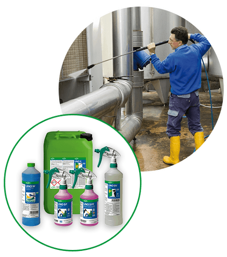 Für intensive Reinigungsaufgaben empfiehlt sich UNO S V, ein viskoser Reiniger, ideal geeignet für Schauminjektoren und Schaumsprüher, zudem NSF-zertifiziert für den Einsatz in sensiblen Umgebungen.